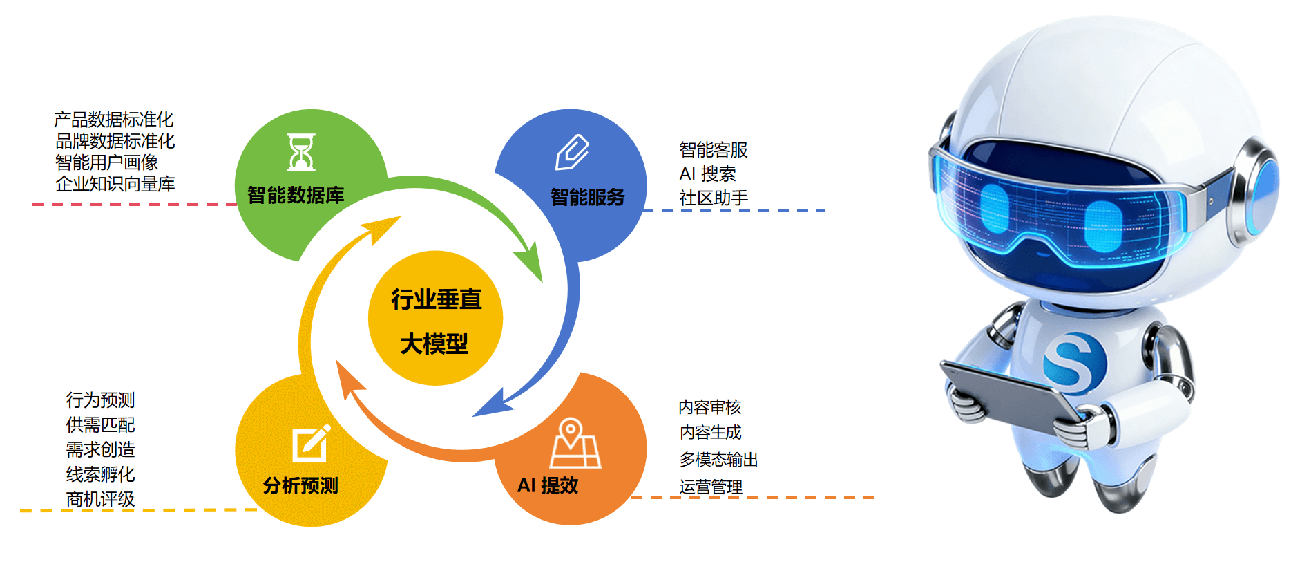 供需匹配 : 预测用户行为、智能商机挖掘工具。识别用户需求意图,精准智能推荐;海量需求创造,主动商机推送,消除供需信息壁垒!