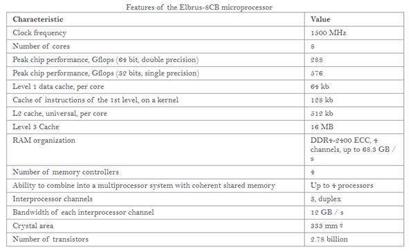 参数方面,Elbrus有双核、四核、八核三种配置,其中,八核心的代号Elbrus-8CB,制造工艺为台积电的28nm,晶体管数量27.8亿个,所以核心面积达333平方毫米,频率仅有1.5GHz,峰值浮点性能单精度576GFlops、双精度288GFlops,内存支持四通道DDR4-2400 ECC,带宽为68.3GB/s。