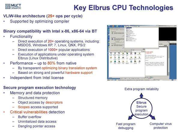 编译器拥有自己的优化设计,但看起来效率一直不高,2015年的文档显示x86、x86-64的转换效率仅为20%,但确实可以跑x86代码、操作系统,包括Windows 7,当然后续肯定有升级,但暂时不得而知,另外也支持MSDOS、Linux、QNX、PS/2,号称性能最高可达原生的80%。