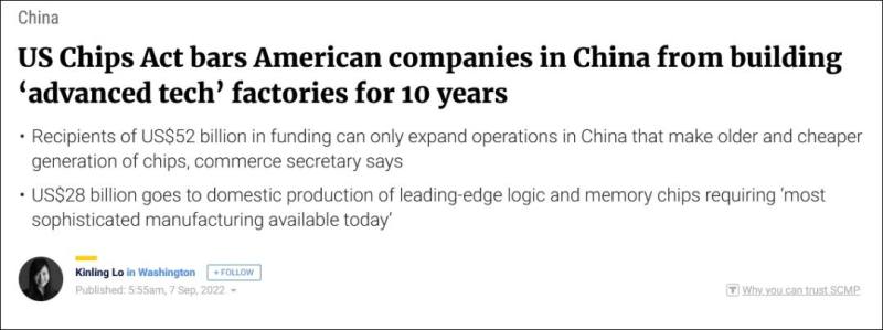 日前,美国总统拜登签署剑指中国的“芯片法案”,旨在通过巨额产业补贴和遏制竞争的霸道条款,推动芯片制造“回流”本土,涉及资金规模高达2800亿美元。