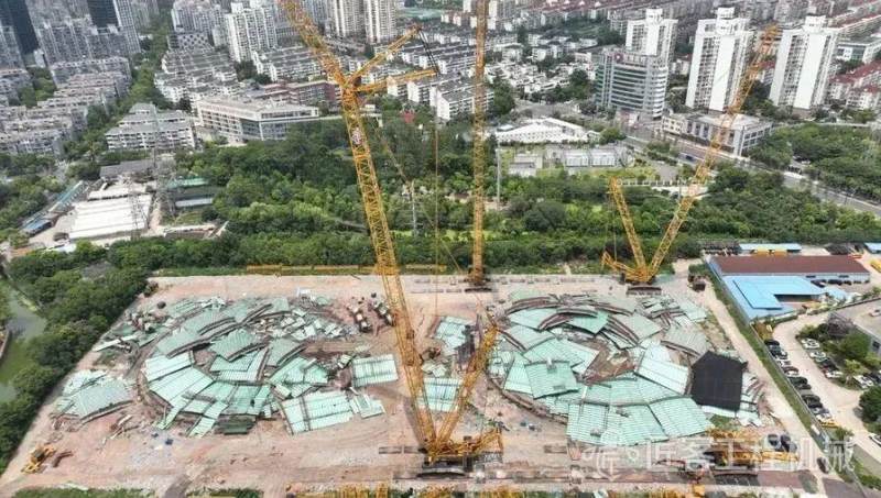 拆除过程中,XGC11000主要采用的是96+60的塔式工况,XGC400采用84+60塔式工况,现场驾驶员团队服从指挥,高度配合切割作业人员, 按照“帽盖、顶盖、壁柜”的顺序,将“大绿罐”逐块切割吊移。