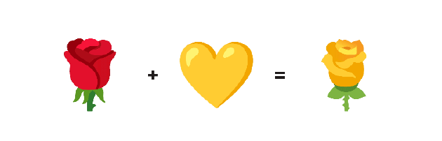 但是,谷歌允许用户通过基于 G-board 的“表情符号厨房”来改变它们的颜色。用户可以向当前表情符号添加彩色的心形符号以更改其颜色,例如,将红玫瑰与黄色心形混合,就会创建出黄玫瑰。