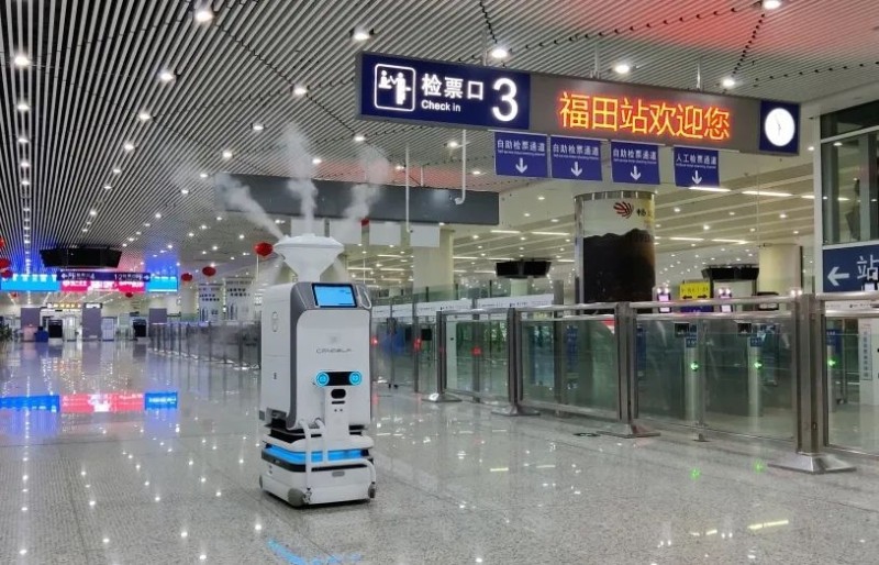 图为消毒机器人在多场景下运行