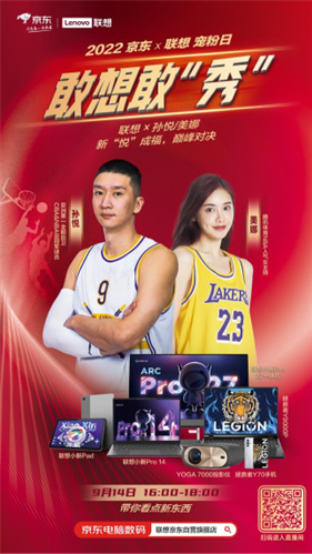 众所周知,孙悦是中国顶尖职业篮球运动员,2009年曾随湖人队夺得NBA总冠军,2014年曾带队北京男篮夺得CBA总冠军,他也是中国历史上第一个同时拥有NBA和CBA总冠军戒指的球员。无疑,在篮球运动领域,孙悦的技术十分过硬,而且拥有众多球迷和粉丝。而京东自成立以来,就在电脑数码领域展现出专业的实力,不断为行业发展做出贡献。活动的另一主办方联想则是全球领先ICT科技企业,在PC领域有着极强的号召力与影响力。