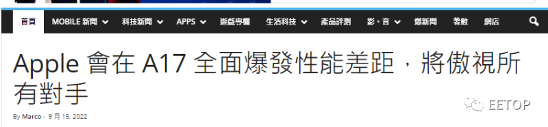 关于A17或将采用台积电最新的N3E工艺的消息,台湾地区媒体Qooah也做了相关报道,并且采用了一个夸张的标题: