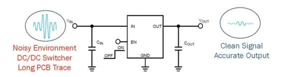 LDO 内部的反馈环路基本决定了工作频率低于 100 kHz 的系统的 PSRR。对于更高频率(高于 100 kHz)应用,仍取决于无源组件和 PCB 布局。因此,谨慎的 PCB 设计可以实现紧凑的电流环路,并降低寄生电感。普通 LDO 在高频率下 PSRR 较低。虽然这对标准摄像头来说不是问题,但更高分辨率 (50−200 MP) 和高帧率的图像传感器要求 LDO 在更低频率(最高 10 kHz)下的 PSRR 高于 90 dB,在更高频率 (1−3 MHz) 下高于 45 dB。