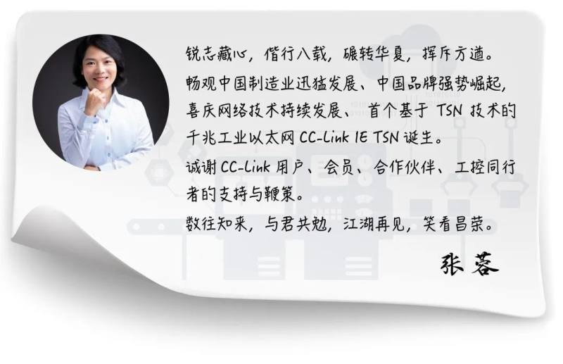在届满之际,张蓉女士为CLPA协会留下了真诚的祝福语,期待未来也有更多的人去了解CC-Link,使用CC-Link。