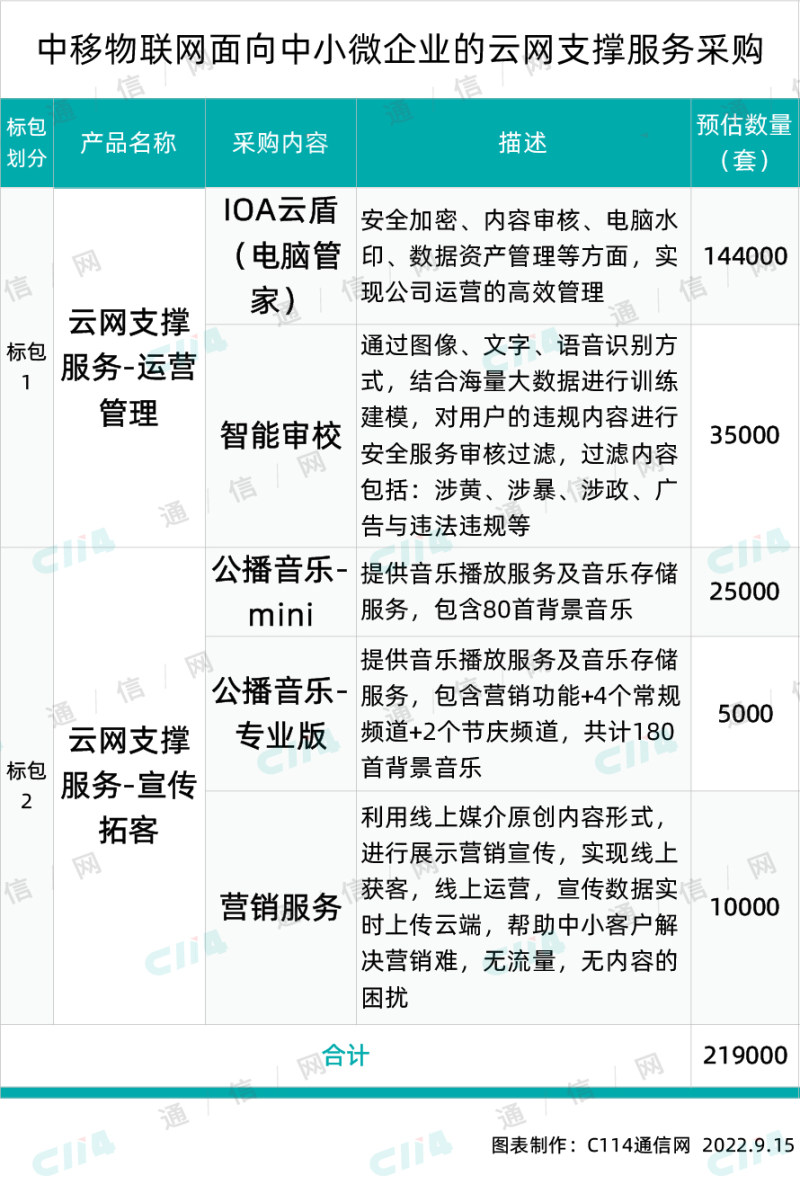 C114讯 9月15日消息(焦焦)从中国移动官网获悉,中移物联网公司日前启动面向中小微企业的云网支撑服务集采。
