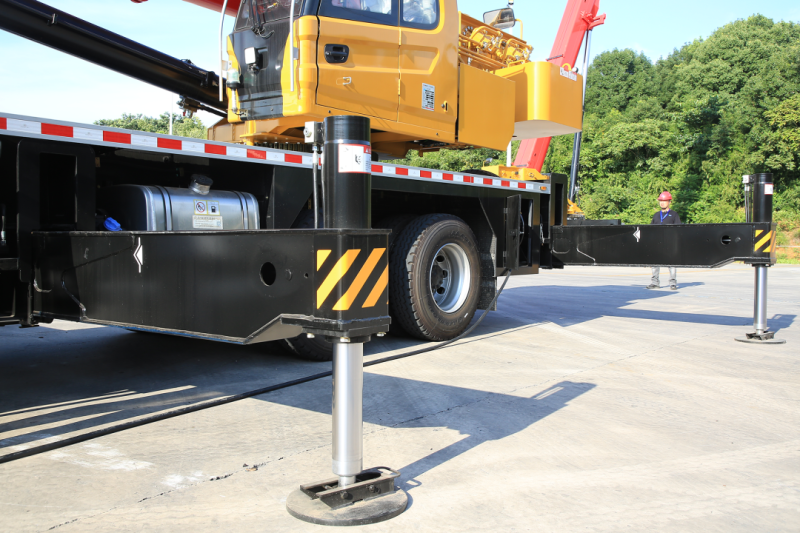 在对三一STC250E5-1混动版汽车起重机的测试现场了解到,依据作业工况电能消耗量的计算参照(GB/T39416-2020)规定,能效部分当中支腿伸缩测试分别需要在高速和低速两种工况下进行,其中高速占70%,低速占30%,支腿伸缩工况在整个测试权重中仅占1%且要经过数次循环测试求取平均数,尽管占比非常小,但评测小组为保证数据准确可靠,仍然在闷热的天气环境下有序推进各项评测。