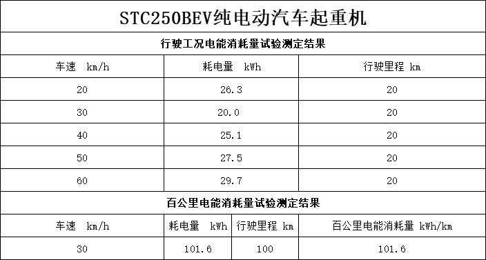 三一获得新能源金奖的另外一款产品STC250BEV纯电动汽车起重机的测试方法与混动版相同,按照标准(GB/T39416-2020)分段测试,对每一种工况进行分解确保起重机每一个工作状态的能耗都被精准检测到,根据记录数据在进行权重分配计算。国家工程机械质量检验检测中心刘佳星表示,“由于该款产品的底盘与上装均为纯电,因此STC250BEV还需单独加测一项路跑能耗测试,在行驶状态下采集电机实际消耗电量的数据进行平均分配。同时在这一项的能耗测试中,我们会分别以20km/h、30km/h、40km/h、50km/h、60km/h的时速去行驶固定公里数,依据对应的耗电量求得比较经济的时速。”