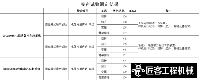 根据三一STC250E5-1混动版的产品介绍,它曾在施工现场实测噪声比传统燃油机型低很多,直接采用380V工业用电进行施工并得到甲方好评,这一点从现场实测近4个小时设备不间断工况切换中可以明显感受到,两台设备的噪声测试实验数据也在司机师傅熟练的驾驶运行下有条不紊的收录完毕。