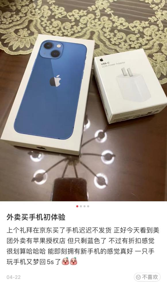 在小红书上,也有许多年轻人,晒出外卖买手机的故事——毕竟,这还算是件值得晒出来的新鲜事。