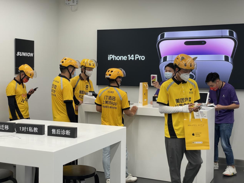 在2020年iPhone 12上市之际,美团闪购便与苹果授权专营店开展了合作。之后,双方不断拓展门店数量,今年的合作范围已扩展到全国200多城、1100余家苹果门店。