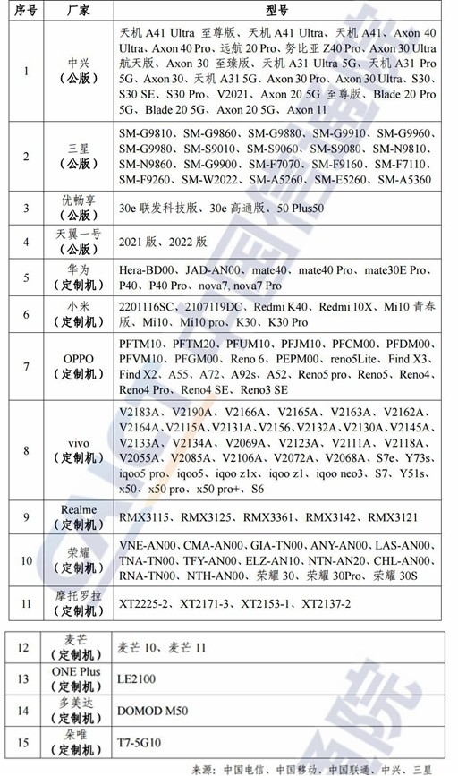 总体来看,支持中国移动5G消息的机型较多(其中多数为定制机),支持中国电信、中国联通5G消息的机型较少(包括自有机型及少量其他品牌)。