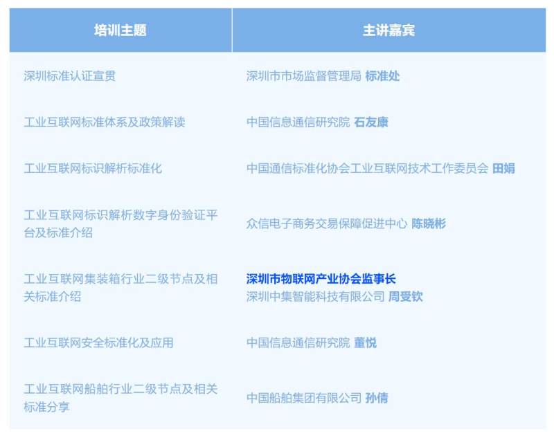 基于目前工业互联网行业发展现状,为加强行业、企业对工业互联网的认知、推动工业互联网行业的标准化建设,规范和指导工业互联网的应用,提高相关从业人员对行业发展态势的了解,现决定在我市举办工业互联网标准宣贯培训会,本次培训由深圳市市场监督管理局主办,深圳市标准技术研究院承办,深圳市物联网产业协会等单位联合协办。