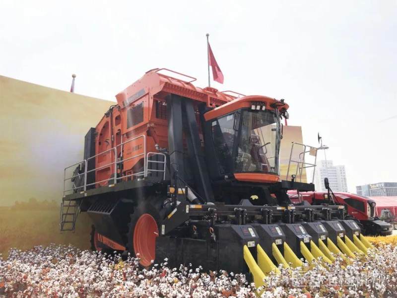 采棉打包机在室外展区参展