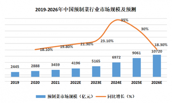 根据艾媒咨询报告数据,2021年,中国预制菜市场规模为3459亿元,同比增长19.8%,如果按照平均每年20%的复合增长速度估算,预计2026年,预制菜市场有望成长到万亿元规模。