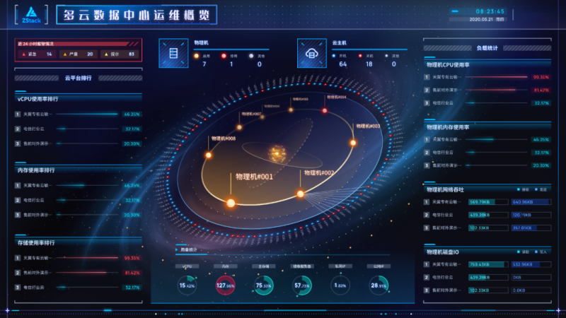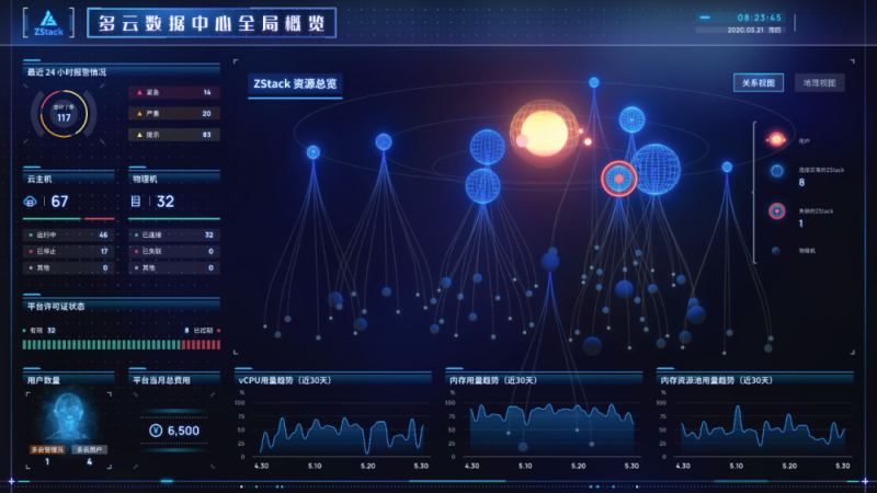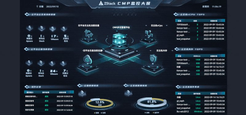 近日,云轴科技(ZStack)基于ZStack CMP多云管理平台重磅推出数据可视化大屏解决方案,主要针对大屏的功能规划、业务场景提炼、及数据可视化设计进行了一系列优化完善,进一步提高云平台在运维、运营两大方面的用户体验,让用户管云更简单、看云更容易、用云更高效!