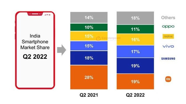 根据相关数据统计,目前在印度市场上,占据前列的五家智能手机厂商分别是小米、三星、OPPO以及vivo和realme,在这五家智能手机厂商当中,有四家是中国企业,还有一家是韩国企业,而印度本土的智能手机厂商在印度的发展却不尽人意。