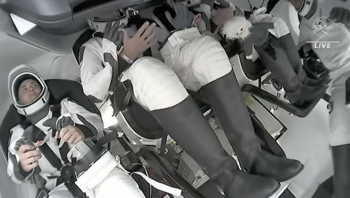 Crew-5任务的另一个第一次是他们选择了一个玩具爱因斯坦的形象作为他们的零重力指示器,这也是第一次有科学家形象在太空旅程中来到载人龙飞船上。航天员们在升空后大约半小时,在完成第一阶段的任务后,随着"载人龙飞船"号的舱门打开,它与猎鹰9号的第二级分离,这一惊喜才被披露。