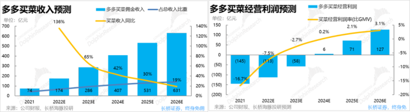 简单来说,随着买菜业务的盈利性不断改善,有望从年亏超百亿的拖累业务,到23年或24年间扭亏为盈,并在稳态下贡献超百亿的利润,从而进一步增强拼多多出众的利润释放能力。