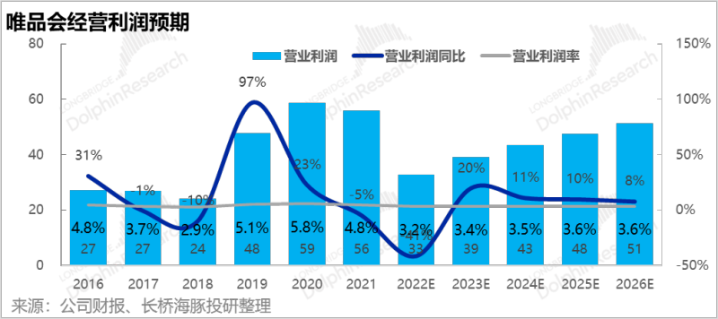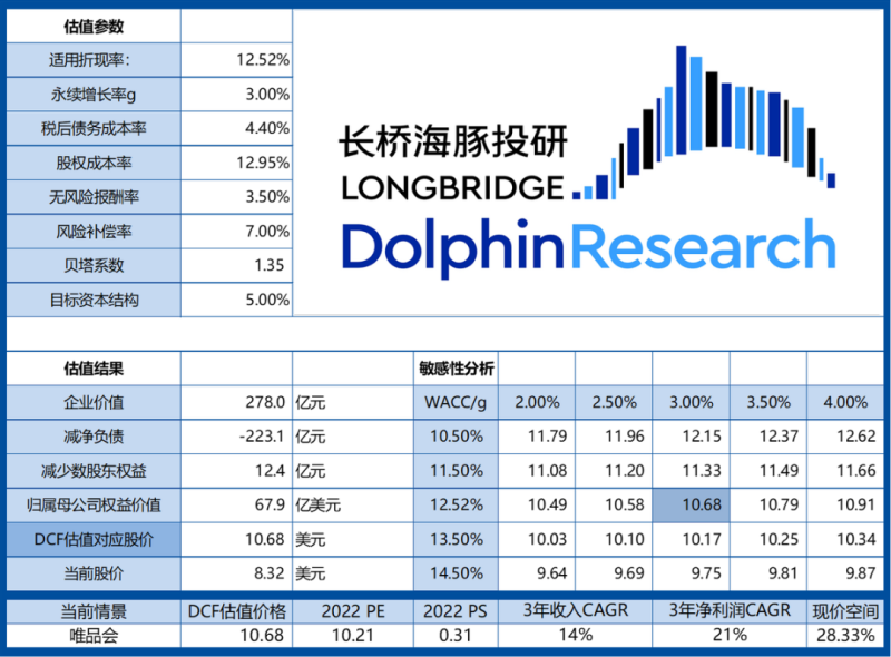 经营利润率上,海豚君的远期估算还是比唯品会自己的估计保守不少:唯品会主要目标是希望走出疫情后,通过毛利率管理把经营利润率维持在5%以上。