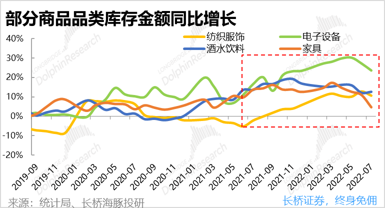 自2021下半年以来,可以看到服饰、家具、电子设备和酒水饮料的库存金额都处于增长态势,而国内社零则持续疲软,可以想见拼多多在接下来的三、四季度里,仍会继续受益于此轮消费降级和去库存周期,从而继续保持高于行业的GMV增长和广告变现率水平。