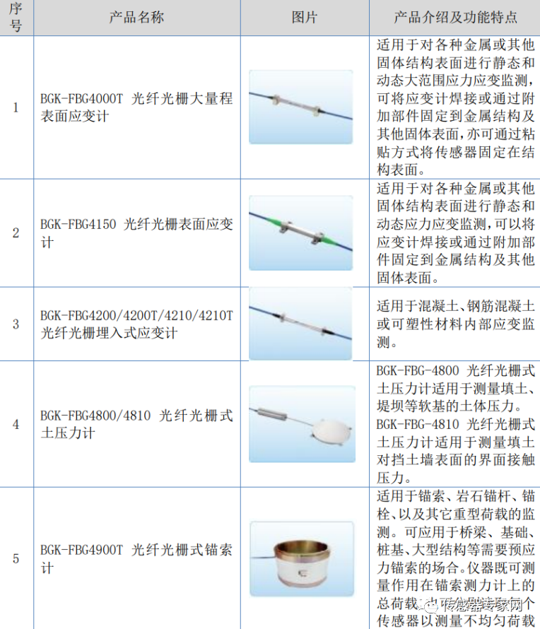 光纤光栅传感器系列产品示意图