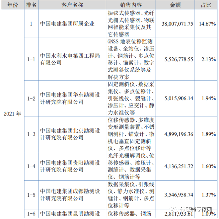 客户类型来看,基康仪器下游客户主要集中在政府水利基建部门。2021年,公司前五大客户分别是中国电建集团所属企业/中国水利水电集团所属企业、贵州省地质环境监测院(贵州省环境地质研究所)、水利部长江水利委员会所属企业、北京SOIL 仪器有限公司、廊坊开发区中油龙慧自动化工程有限公司。