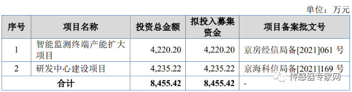 IPO募资方面,本次公司拟募资8455.42万元,资金将用于智能监测终端产能扩大项目、以及研发中心建设项目。上述项目落地有利于扩大公司的市场份额,进一步提高公司的知名度和市场影响力,从而提高公司的综合竞争力。