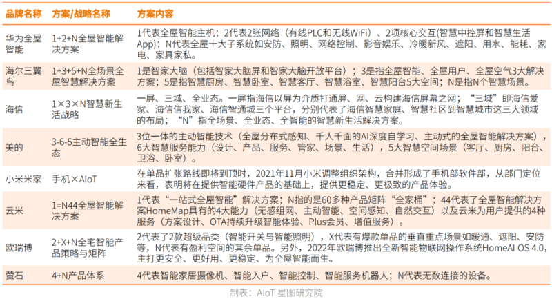 图表:主流厂商全屋智能解决方案框架