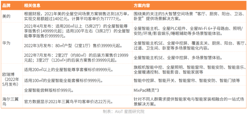 图表:部分全屋智能成套解决方案内容及标价