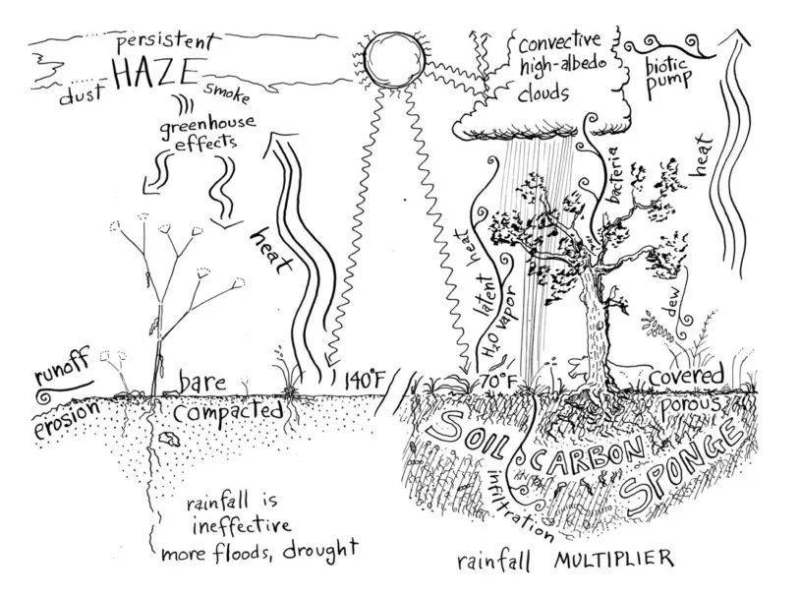 再生农业的目标就是打破恶性循环,重新启动良性循环,从土壤健康、碳循环到水循环和生物多样性,一步步实现健康生态系统的再生。