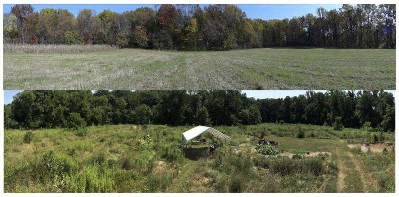 Forested森林农场2012年(上)与2015年(下)的对比图。