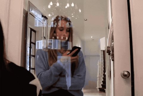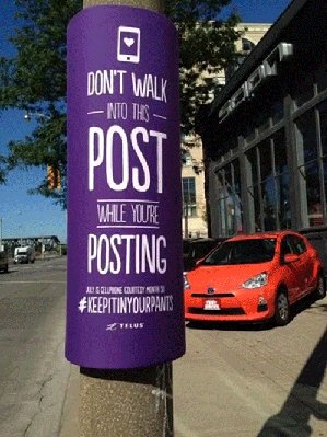 为了自己,行人还有玻璃门的安全,还是找个安全的地方玩手机吧。