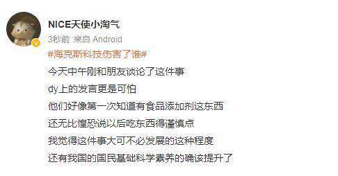 事实上,业内的确有一些不良商家利用了“科技狠活”来伤害大众,但是睿智的博主们在做趣味直播的时候,完全可以说得更加圆满周到一些,以避免机关枪一顿扫射下来,波及到一些无辜。
