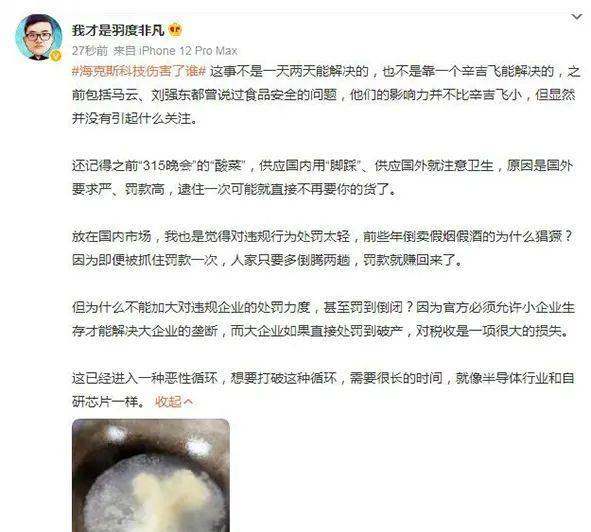 看过辛吉飞视频的粉丝虽然对他的风格褒贬不一,但是对他所揭露的“海克斯科技”却印象至深,因为这足以让人触目惊心,也足以引起大众的广泛关注。毕竟,食品安全与我们每个人息息相关。