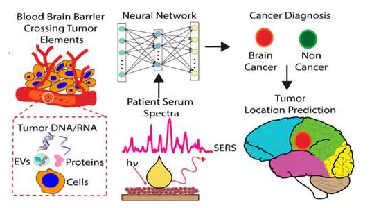 为了有效地治疗脑癌,临床医生不仅需要证实恶性肿瘤的存在,还需要确定是源自哪里(原发性肿瘤)或丛其它器官转移到大脑(继发性肿瘤);同时他们还需要知晓肿瘤在器官中的具体位置,由于目前没有诊断技术能在不进行手术或痛苦的脊柱穿刺的情况下完成这一壮举,为此,本文中,研究者Bo Tan等人就开发出了一种利用微量血清来进行的无创检测技术。