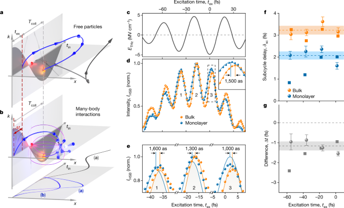 为了观察自由电子在固体中的超快运动,研究人员开发了一种新型的阿秒“秒表”。这个“阿秒钟”的“钟摆”是两个光脉冲,一个是与电子的状态相匹配的能量脉冲,另一个是导致状态改变的脉冲。他们基本上可以拍摄这两个脉冲如何改变电子的量子态,然后将其表达为时间的函数。
