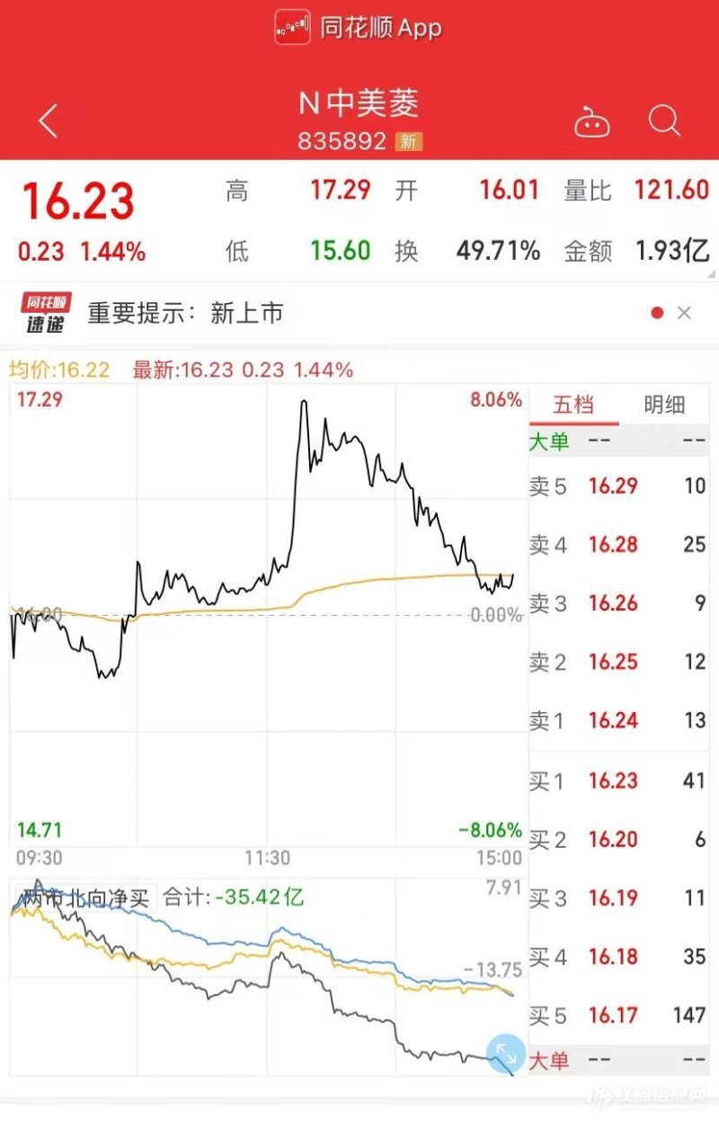 2022年10月18日,中科美菱低温科技股份有限公司(简称“中科美菱”BJ835892,股价16.17元,市值15.64亿元)正式登陆北交所。本次上市标志着中科美菱进入资本市场,为公司进一步发展奠定基础。