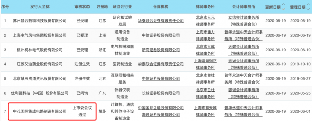 6月1日,中芯国际的科创板上市申报获得上交所受理,6月4日开始接受问询,6月7日给出了回复。6月19日下午,上海证券交易所科创板上市委2020年第47次审议会议结果出炉,同意中芯国际集成电路制造有限公司发行上市(首发)。
