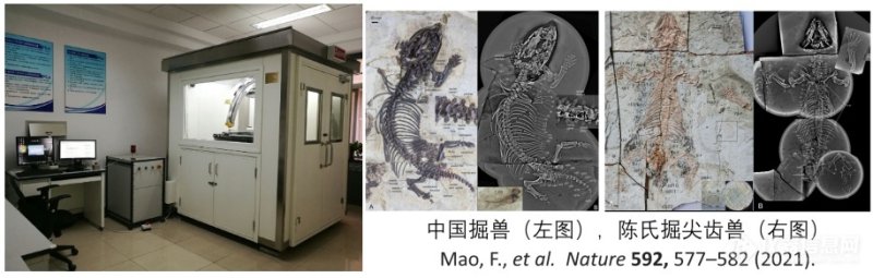 在科技部重大科学仪器设备开发项目支持下,2015年,由中国科学院高能物理研究所和古脊椎动物与古人类研究所共同成功研发专用于“板状化石”的显微CL仪器,并在2016年中安装到中科院脊椎动物演化与人类起源重点实验室高精度CT中心,该仪器同时服务其他科研院所,中国科学院南京地质古生物研究所、中国地质科学院地质研究所、北京自然博物馆、安徽博物院、广西自然博物馆、北京大学,云南大学、西北大学、首都师范大学等,累计检测化石750余件。为板状化石的三维无损检测提供了全新工具,起到了不可替代的作用。该仪器的实验结果,助力研究人员在《Nature》、《Science》等期刊上发表论文20余篇,其中五项成果分别入选并领衔2018年、2019年、2020年和2021年中国古生物学十大进展。