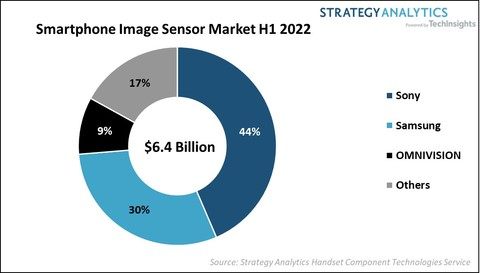 近日,市场调研组织Strategy Analytics发布的最新报告显示,2022年第二季度智能手机图像传感器市场需求继续减弱,2022年上半年全球智能手机图像传感器市场总营收为64亿美元,出货量同比下降11%。