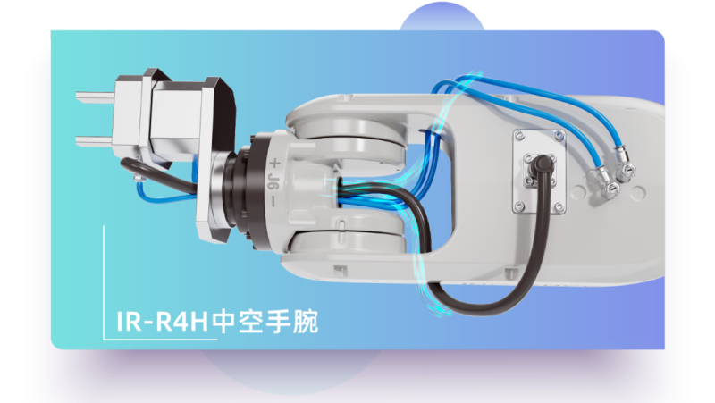 IR-R4H中空手腕机型,能够有效减少对外部设备干扰、有利于狭窄空间作业及高速运动配线更稳定,更好的满足对极致空间的需求。