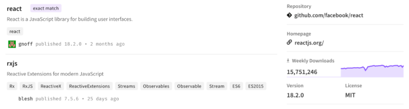 "description": "React is a JavaScript library for building user interfaces."