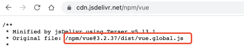 访问 https://cdn.jsdelivr.net/npm/vue 实际上获取到的是 jsdelivr 字段里配置的文件地址。