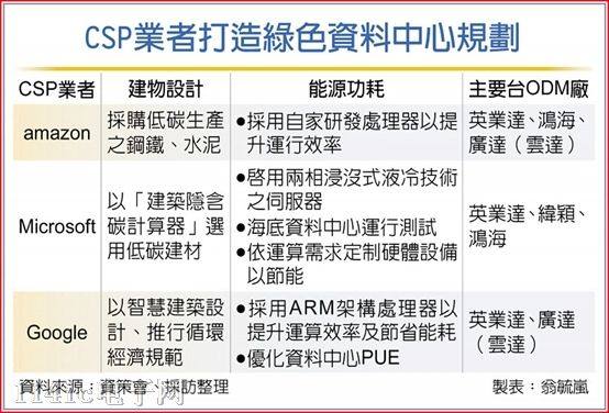 净零碳排已成为许多国际大厂永续经营的既定目标,在此前提下,国际大厂旗下数据中心的建置亦高效能的IT设备、运用AI优化营运管理,及大量购买绿电等方式因应。