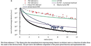数据显示,光刻胶中的沉积能量不会下降到光束中心的10%,直到径向距离约为4nm。