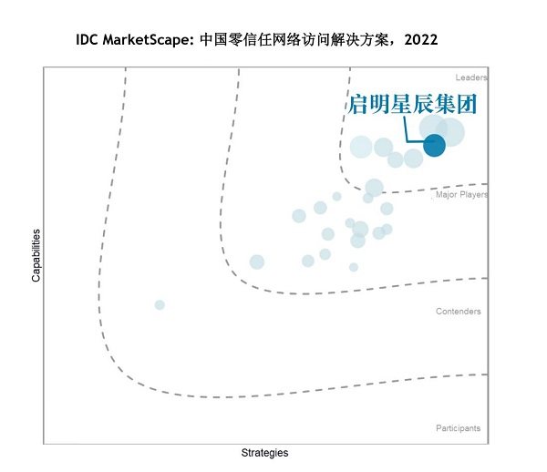 近日,全球领先的IT市场研究和咨询公司IDC发布《IDC MarketScape:中国零信任网络访问解决方案,2022 年厂商评估》报告。启明星辰集团以过硬的产品质量、全面完整的解决方案、优质的服务能力,在现有能力、未来战略和市场表现三大维度占据优势,居中国零信任网络访问解决方案市场领导者位置。