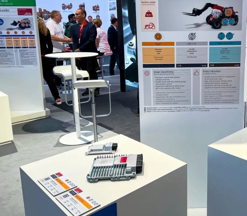 现场还展示了纯电驱装载机全套系统,包括行走系统和工作系统。林德液压为其提供工作系统主阀,同时高度集成电机和变速箱,成功为客户提供一体化解决方案。目前该电驱系统已实现配套销售。